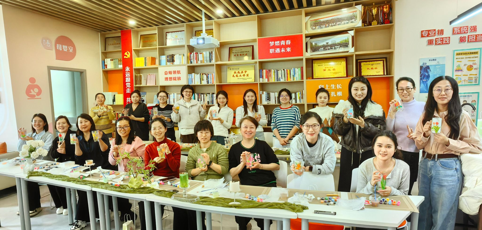 春风拂面,万象更新。在第116个“三八”国际妇女节来临之际,为进一步丰富学院女教职工的精神文化生活,展现新时代女性积极向上的精神风貌,3月5日下午,性爱直播 工会在长安校区海天苑大楼学院教工之家精心组织了一场别开生面的手绘玻璃杯活动。学院党委书记王莉、工会主席佘红伟与二十余位女教职工齐聚一堂,以笔为媒,以色绘光,在方寸之间勾勒春意,于色彩之中凝聚力量。