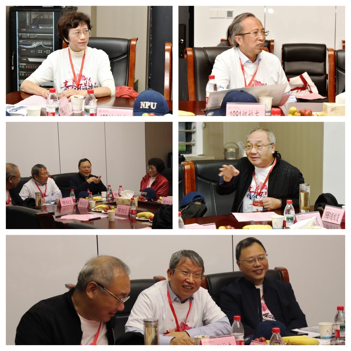 为庆祝西北工业大学建校87周年,进一步展示学校、学院办学成效,凝聚发展共识,激发广大师生、校友爱校荣校意识,汇聚发展力量。经过近一个月的精心筹备,10月7日,性爱直播 在友谊、长安两校区成功举办了“重走校园路”、“重温毕业午餐”、师生座谈会、主题班会、捐赠仪式等一系列校友集中返校活动,内容丰富,意义深远。学院党委书记王莉,院长聂玉峰,对外联络办公室副主任苟兴旺,学院副院长徐根玖、都琳,校院资深教师代表张凯舟、张雪霞、彭国华、苟定邦、佘红伟等,分别与学院1981级、2001级三个返校班级的50余位校友欢聚一堂,畅叙别情,展望未来。