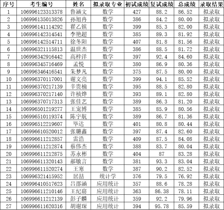 2026年硕士研究生拟录取名单公示