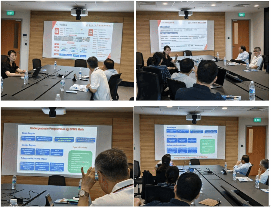 3月27日上午,学院代表团前往新加坡南洋理工大学进行合作洽谈。新加坡南洋理工大学王立联,童平,夏克林,Xiang Liming四位教授热情接待。3月27日下午交流会上,学院副院长都琳教授详细介绍了性爱直播概况 、科学研究、国际合作等基本情况,并从科研环境、个人后续发展、薪酬、科研配套设施等多个角度对学校以及学院的人才引聘政策进行了深入解读。新加坡南洋理工大学数学科学系的专家学者对性爱直播-性爱直播官方网站 的学术水平和引才政策给予了高度赞赏,并表达了加强合作的愿望。新加坡南洋理工大学童平副教授详细介绍了本硕博各项目的培养方案和实施举措,引发了热烈讨论。双方围绕人才培养、科研合作、学术交流、国际暑期夏令营项目等合作开展了深入洽谈,就本科生短访、赴外毕设、研究生联培和暑期项目初步达成了合作意向。