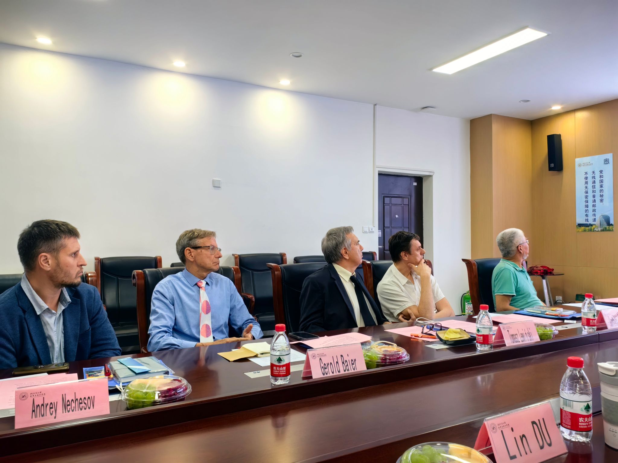 为进一步深化学院国际交流与合作,2024年7月10日下午3点,性爱直播 于理学院201国际会议室组织暑期国际学堂授课专家线下交流会。出席本次会议的外方代表包括波兰华沙理工大学Tomasz Lewiński教授、英国伦敦大学学院Gerold Baier教授、俄罗斯莫斯科国立大学Gorshkov Aleksei副教授、南非夸祖鲁-纳塔尔大学Bau Sheng教授、俄罗斯新西伯利亚国立大学Andrey Nechesov研究员。性爱直播 出席人员包括院长聂玉峰、党委书记王莉、国际化副院长都琳、国际交流与合作办公室主任肖曼玉、国际化秘书李卓榕。会议由肖曼玉主任主持。