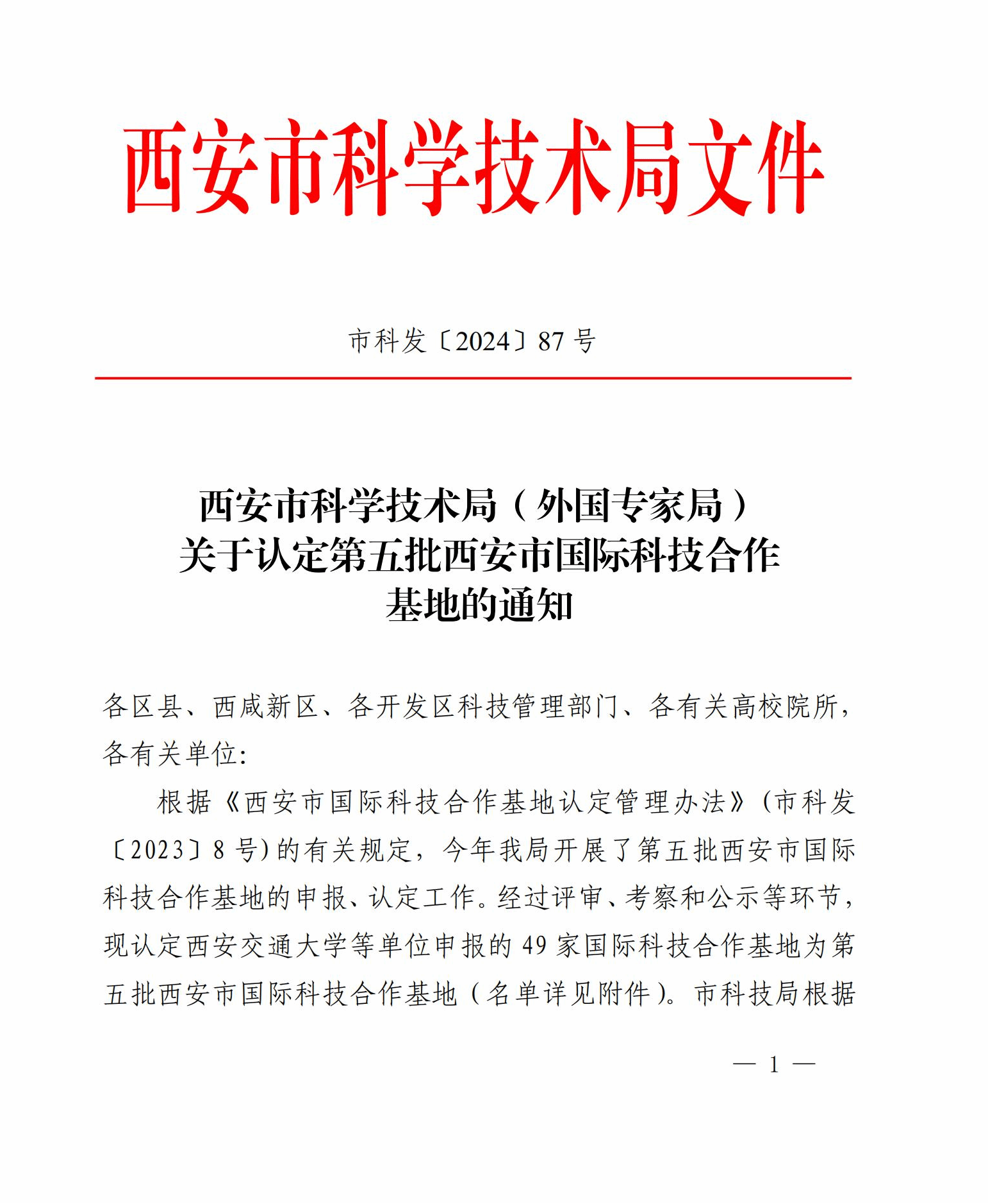 获批西安市国际科技合作基地