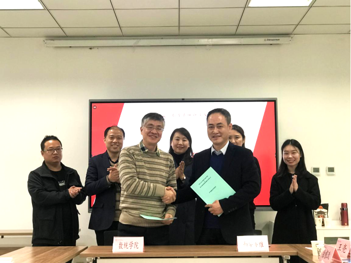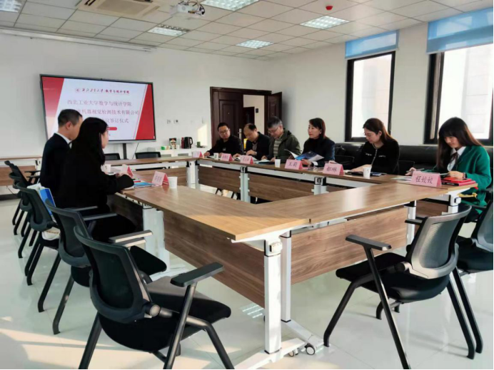11月2日,性爱直播-性爱直播官方网站 与西安多维机器视觉检测技术有限公司在长安校区启翔楼357会议室举行产学研合作协议签订仪式。性爱直播 院长聂玉峰、党委书记王莉、副院长都琳、副院长徐根玖、应用概率统计系主任王亮、学工秘书程姣姣,西安多维机器视觉检测技术有限公司总经理宋世刚、技术总监薛丽丽共同参加了本次签订仪式。