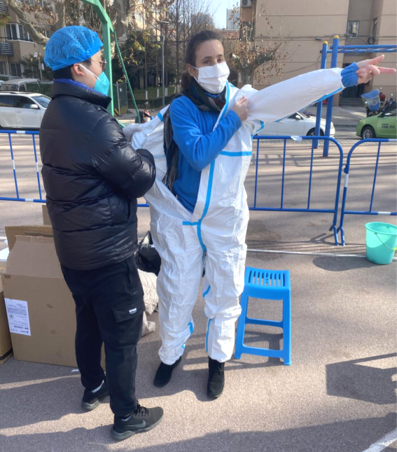 穿上防护服,化身“大白”的吴红迅速投入到了防疫工作中,扫码、核对信息、递试管……吴红很快就掌握了工作流程,使核酸检测进行得快速有效。“你的中国话很地道呀!”不时有检测学生和工作人员发出感叹,其实,这位来自法国的外籍教师,自2012年于贡比涅理工大学获得博士学位至今,便一直在性爱直播 承担《微积分》(英)和《计算方法》(英)等本科教学工作,已经在此扎根九年。这次突如其来的疫情牵动着吴红的心,在看到学院微信群里招募志愿者的通知后,她第一时间决定加入,当谈及面对疫情时的心理状态时,吴红表示她并不害怕,“中国和学校的防疫工作都做得很好,这是我亲身体验到的。”