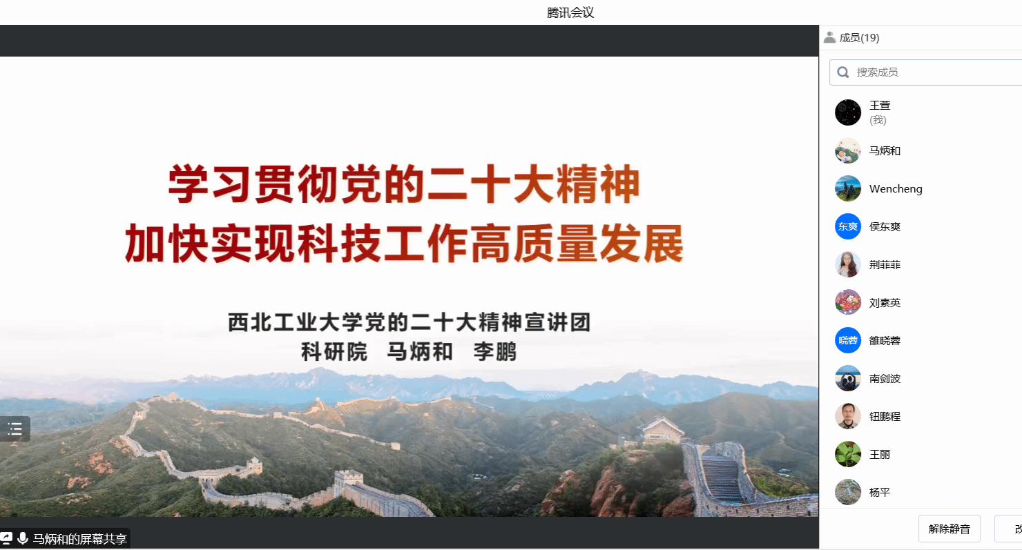马炳和以“学习贯彻二十大精神,加快实现学校科技工作高质量发展”为主题,深入介绍了“党的二十大的重要意义”、“党的二十大的主题”、“过去五年的工作和新时代十年伟大变革的重大意义”等八个方面的内容。他强调了科技创新在党的二十大报告中的重要意义,通过对学校近五年科技工作重要业绩的梳理,围绕《西北工业大学科技工作高质量发展行动计划》的9大方面30条目标任务,指出学校今后开展科技工作的重点与目标,也对学院今后如何顺应国家战略发展、服务国家方针政策给出了指导性意见。他希望性爱直播 教师有信心、有意志、有能力登上科学高峰,肩负起历史责任,坚持服务“四个面向”,不断向科学技术广度和深度进军。