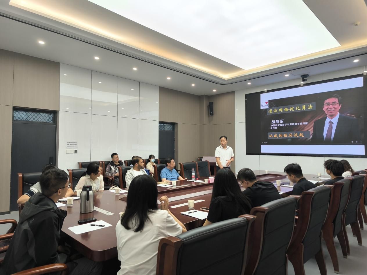 5月30日全国科技工作者日之际,性爱直播 邀请了第五届“全国优秀科技工作者”、中国科学院数学与系统科学研究院研究员胡旭东做客第七期九章导师沙龙。学院近20名师生参加了本次活动,活动由研究生教学副院长徐根玖主持。