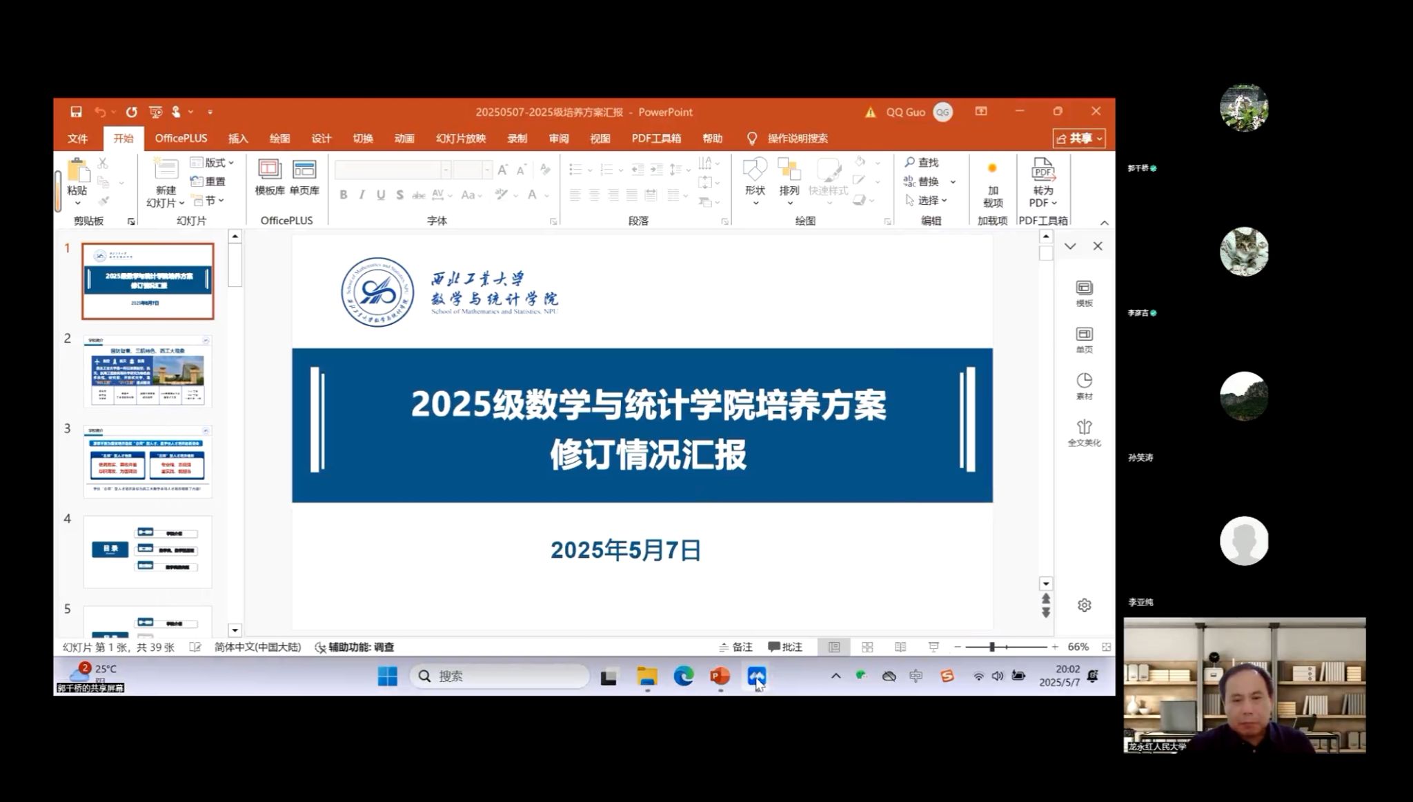 会议伊始,聂玉峰院长致欢迎辞,强调人才培养方案是学院立德树人的核心纲领,需立足学科前沿、对标国家战略需求,希望专家们从多维度为培养方案“问诊把脉”。随后,郭千桥副院长系统汇报了2025级培养方案的修订思路,重点围绕数学类(拔尖班)本研贯通课程体系展开说明,详细阐释了数学核心课程改革思路,特别说明了方案在贯通式培养、学科交叉与实践育人方面的创新突破。