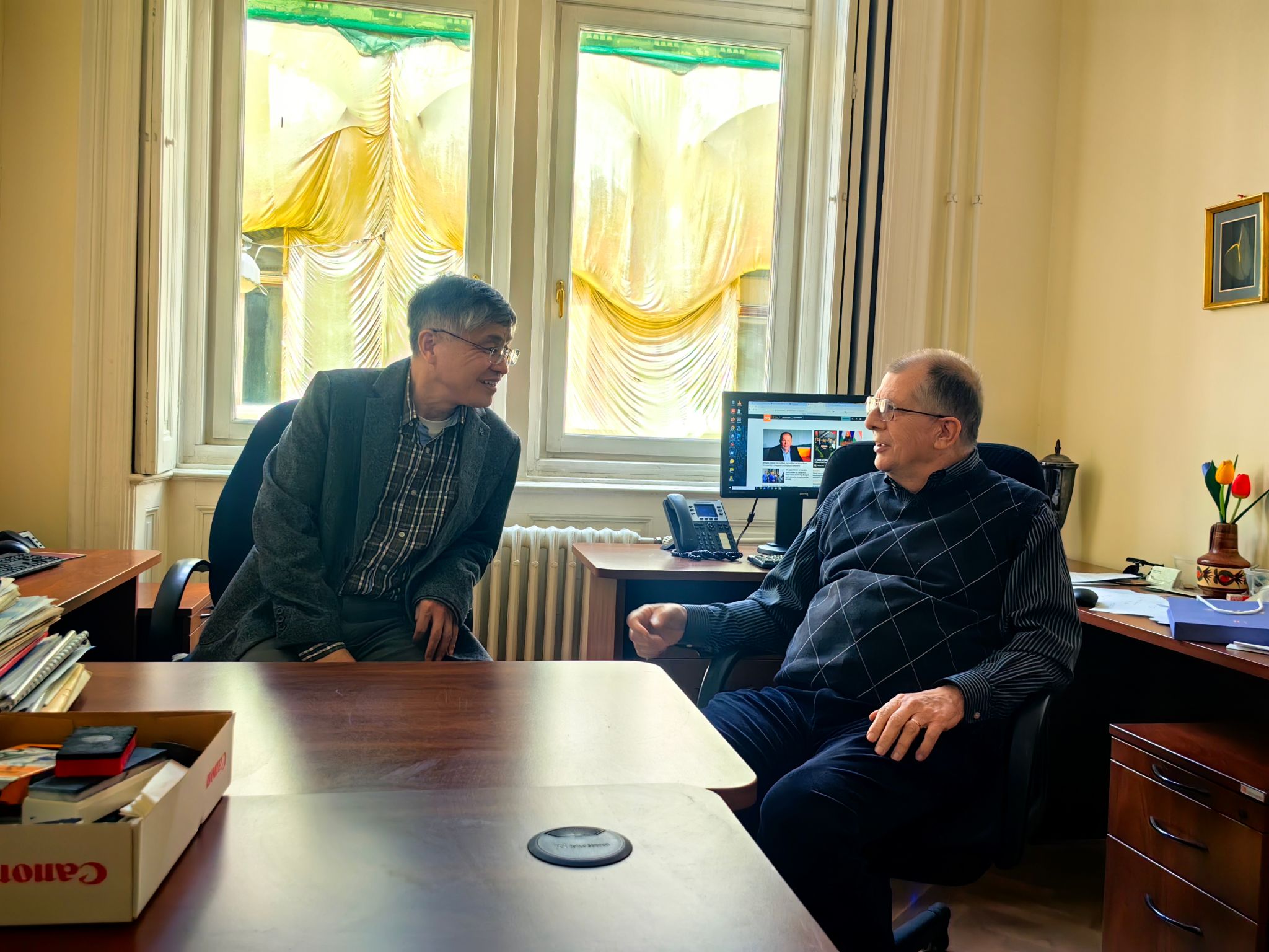 4月16日,代表团访问阿尔弗雷德・雷尼数学研究所,与Ervin Győri教授举行会谈。聂玉峰院长表示,雷尼数学研究所与性爱直播 图论研究团队长期保持密切科研合作与学术往来,合作基础扎实、成果显著。希望以此次访问为新契机,进一步深化团队联合攻关、青年学者互派、学术资源共享与高水平论文联合发表,同时依托雷尼数学研究所的人才资源优势,搭建海外引才桥梁,吸引研究所优秀青年学者来校,持续提升两校在相关研究领域的国际学术影响力。