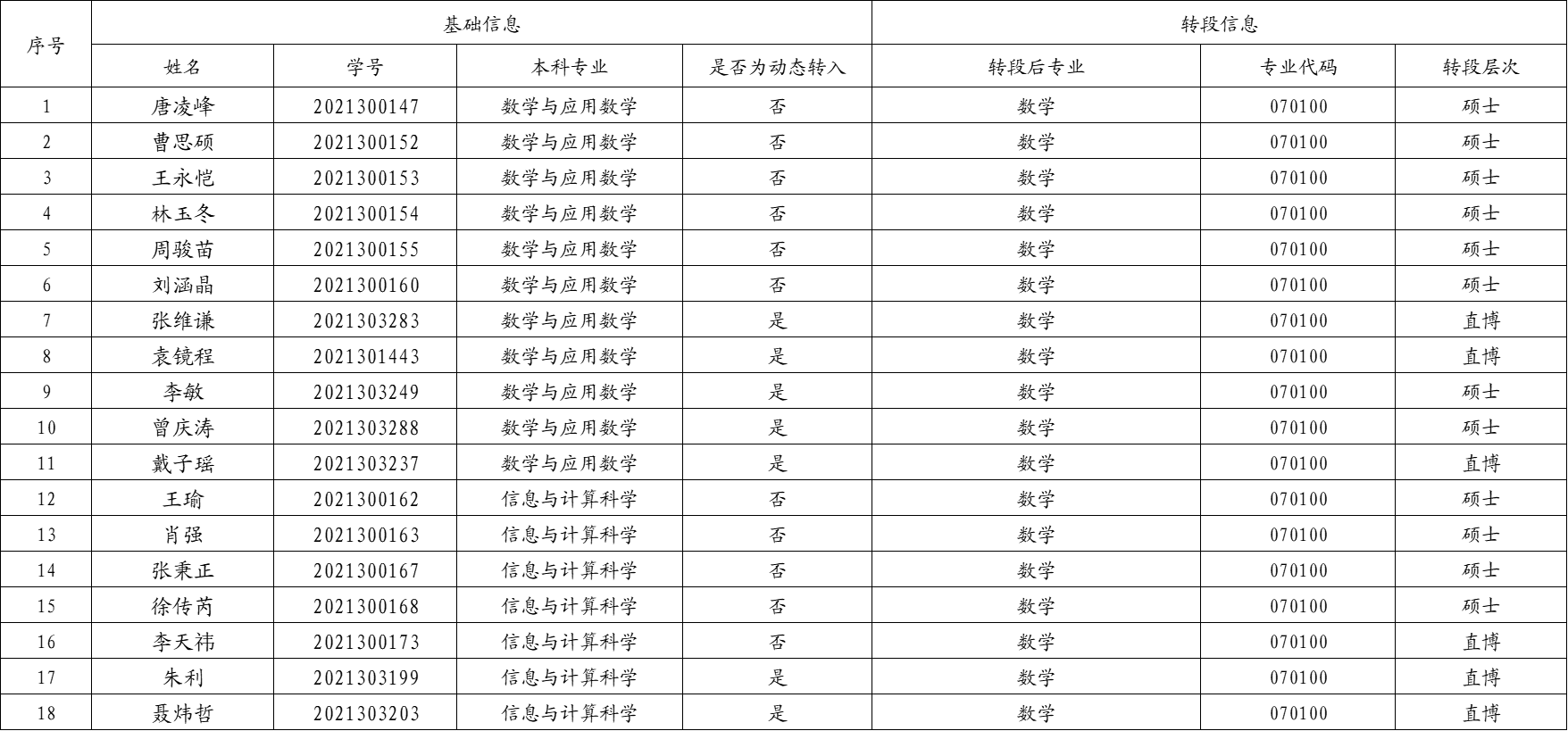 经学院研究生招生工作小组审核通过,现将性爱直播 2021级强基计划转段拟录取名单公示如下: